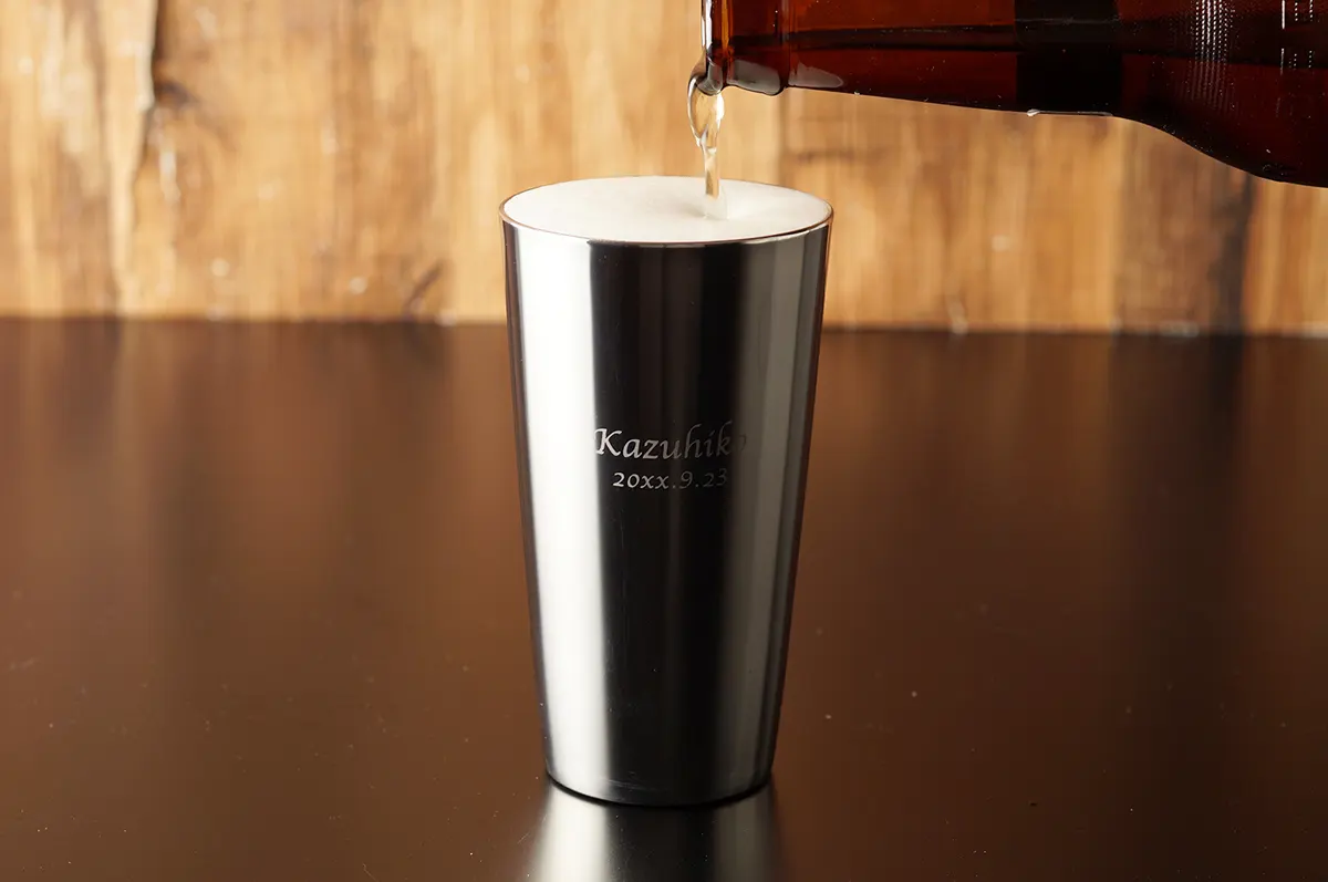 磨き上げられたステンレスの光沢が美しいビアタンブラーです。世界的に有名な金属加工の街、新潟県・燕の職人がひとつひとつ手仕事で仕上げた逸品。内側には細かな『ヘアライン加工』が施されており、プロが注いだようなクリーミーな泡立ちを楽しめます。