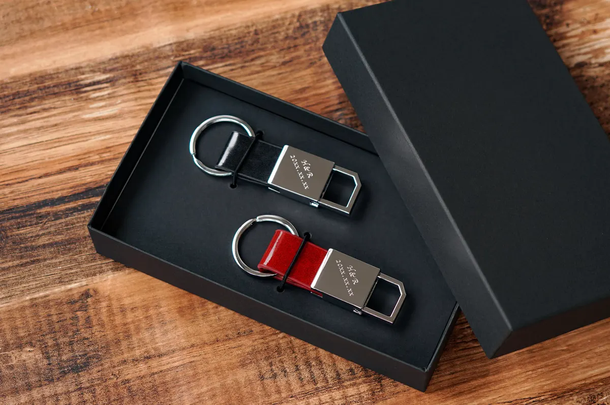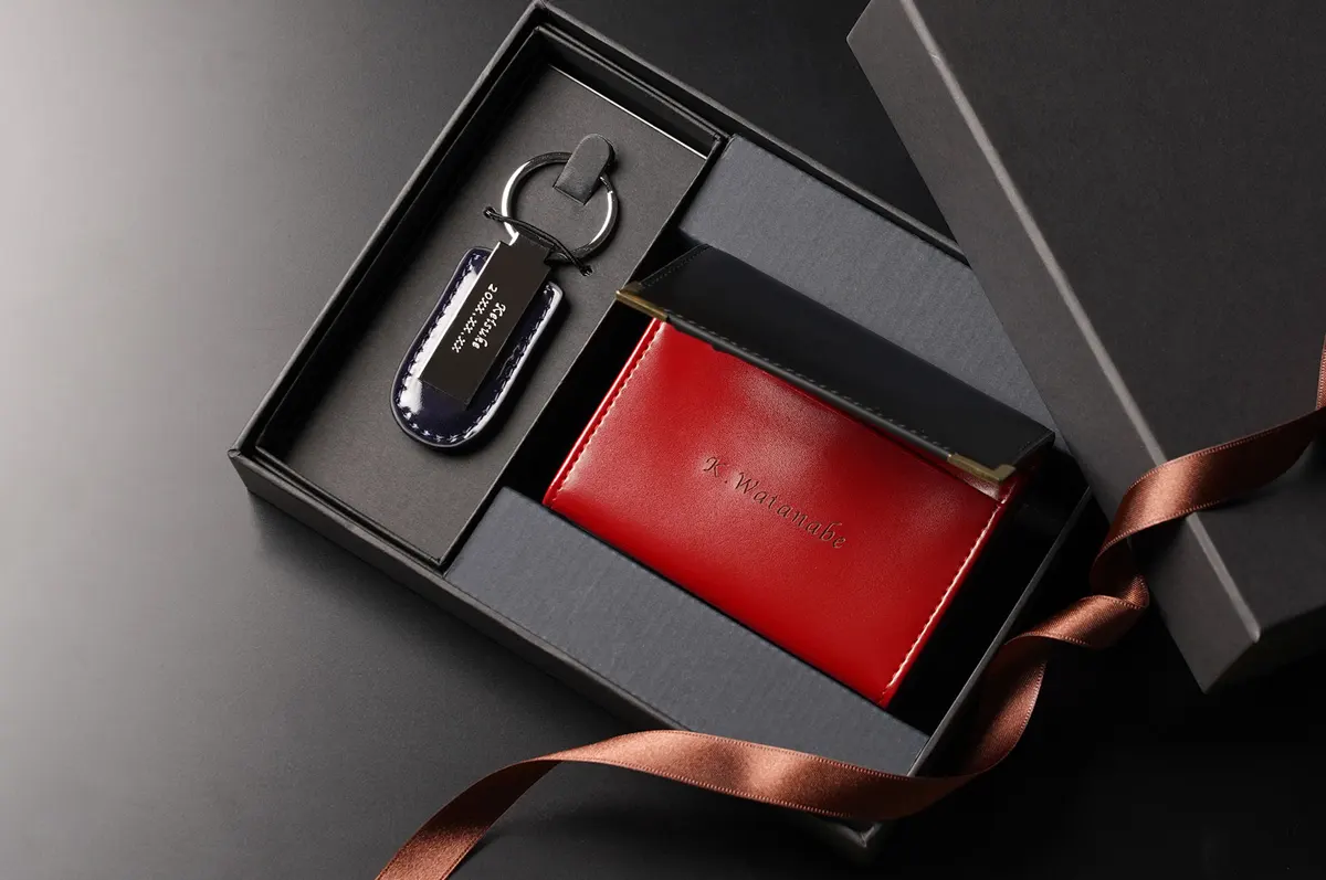メタルプレートキーホルダー&本革バイカラー名刺入れセット
