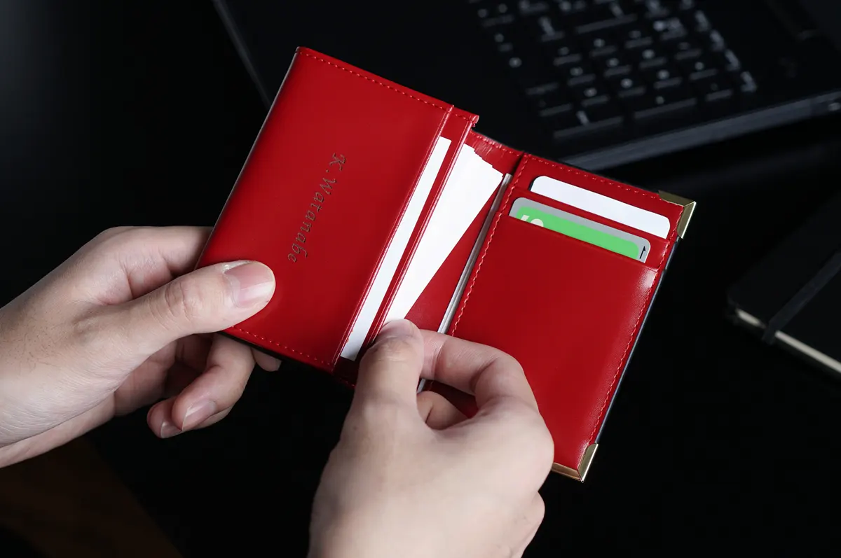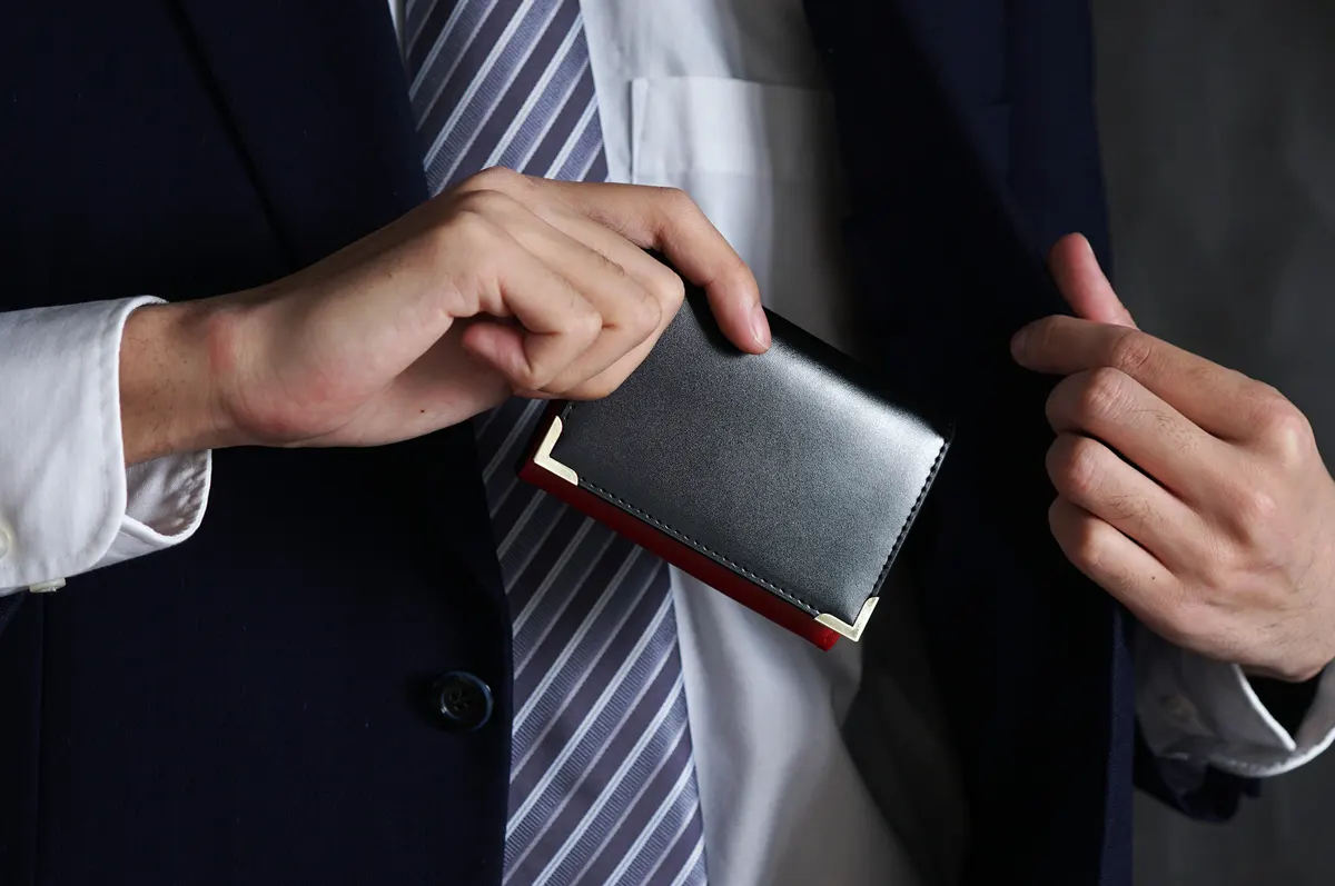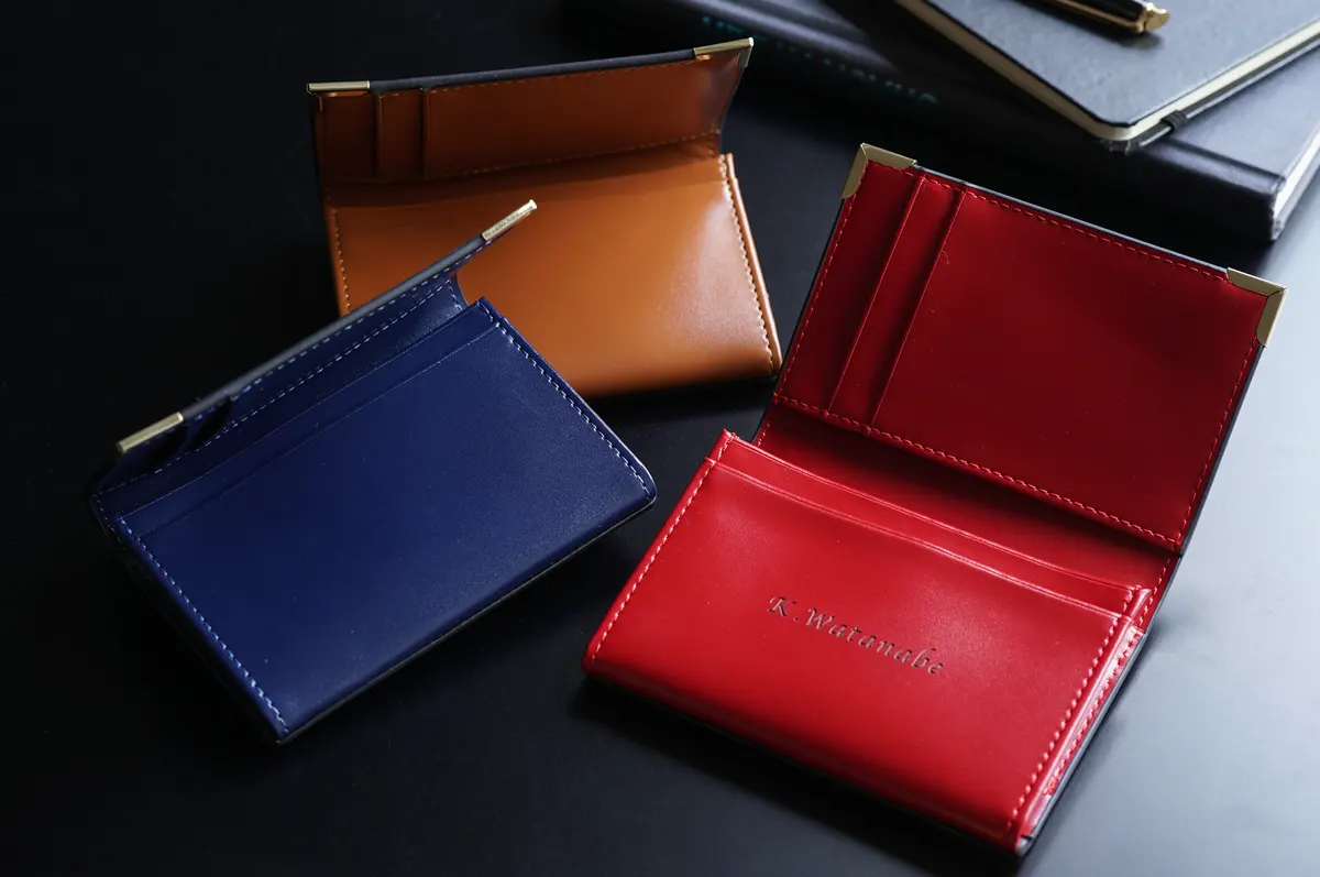 名刺入れに使用しているのは『銀付き革』とも呼ばれる天然高級革。収納枚数は約50枚、便利な6つのカードポケットなど、外回りの多いビジネスマンも認める実用性を兼ね備えています。