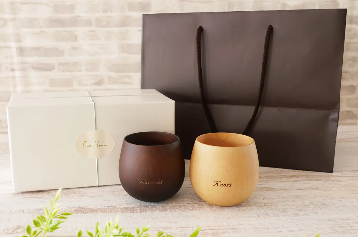 お酒もたしなむカップルにはこちら。まんまるフォルムが可愛らしいロックカップです。この形はただかわいいだけでなく、倒れても起き上がるように計算して作られています。使用されているなつめ(棗)の花言葉は『健康』『若々しさ』『あなたの存在は私の悩みを軽くします』など。これまでもこれからも、一緒に歩んでいきたい大切な人への贈り物にぴったりなペアセットです。