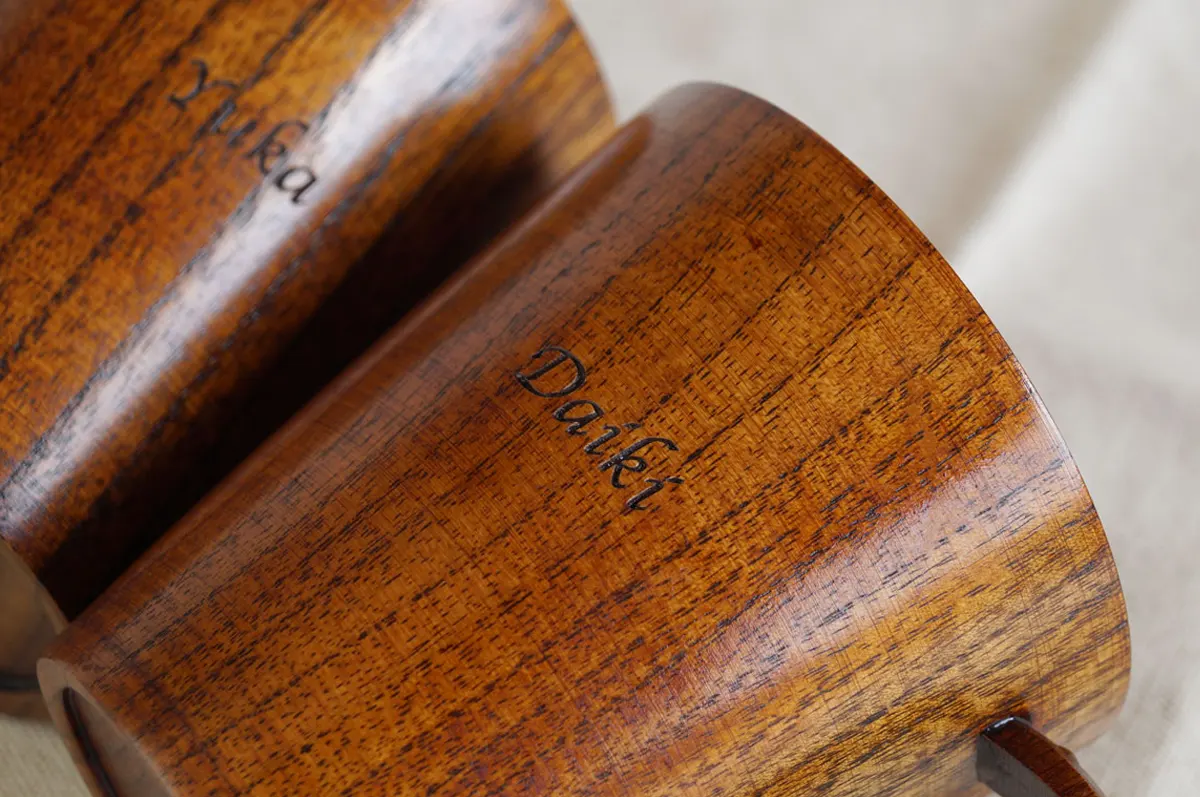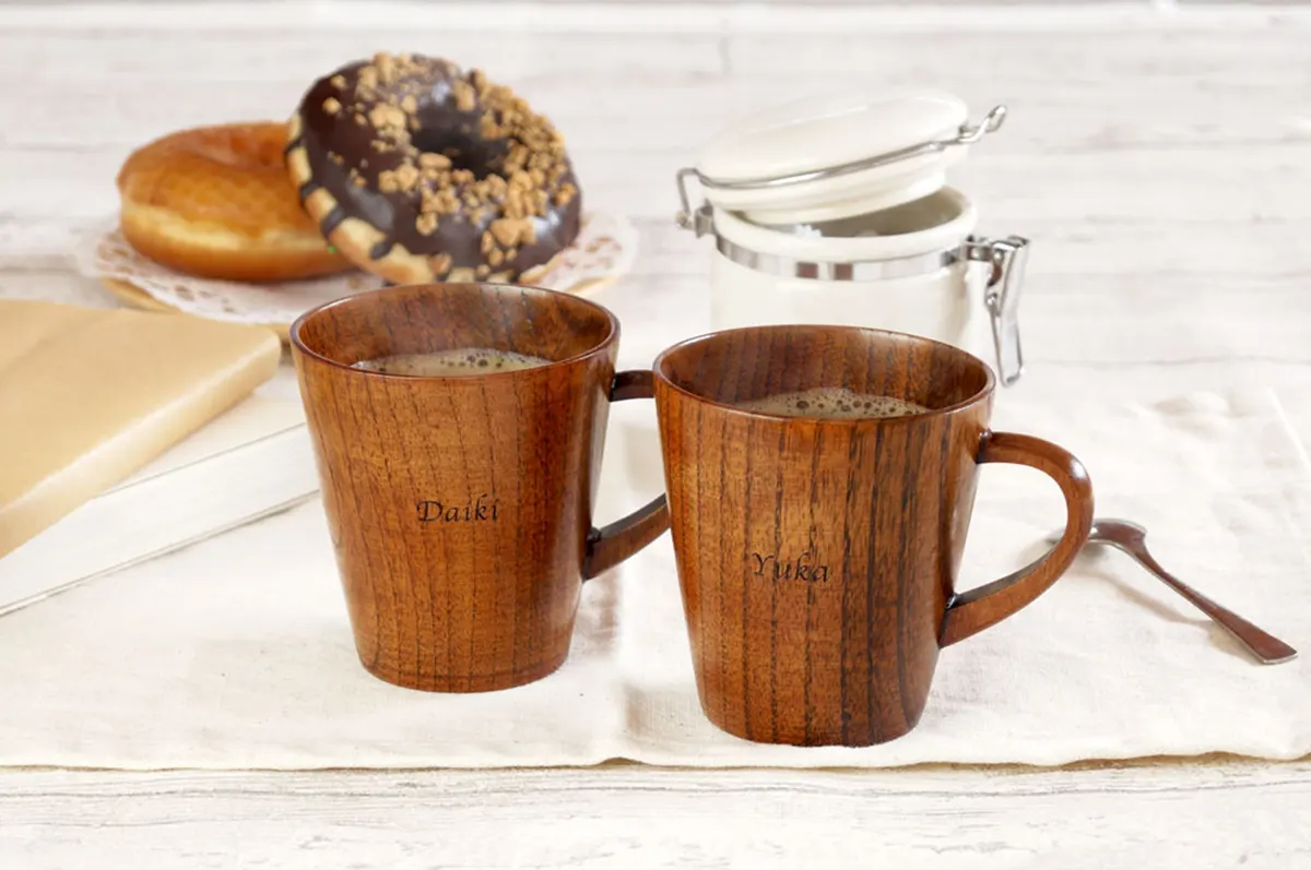 普段使いにぴったりな、シンプルデザインの木製マグカップのペアセット。木製食器は陶器やプラスチックに比べて断熱性に優れています。アツアツのコーヒーを入れても、手が熱くならず冷めにくいのが嬉しいポイント。ぬくもりを感じる優しい肌触りも、木製品ならでは。耐水性と抗菌性に優れた漆塗りだから、衛生面も安心です。
