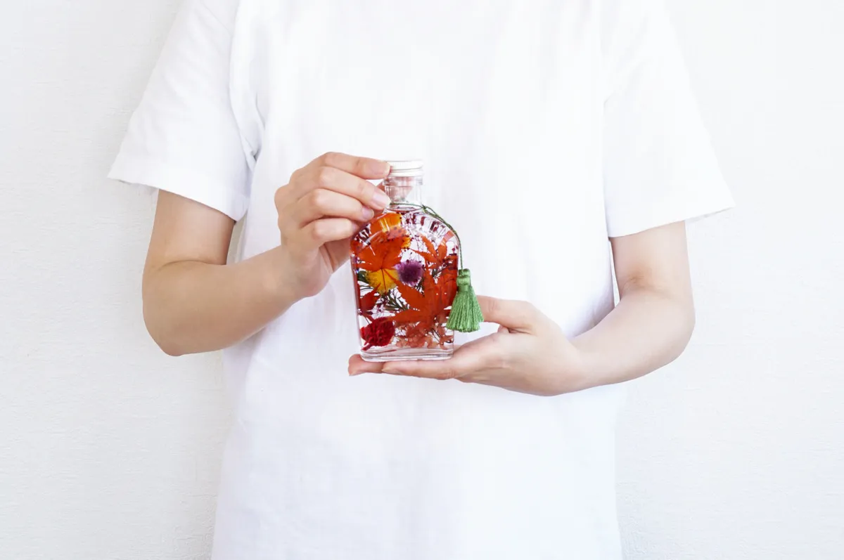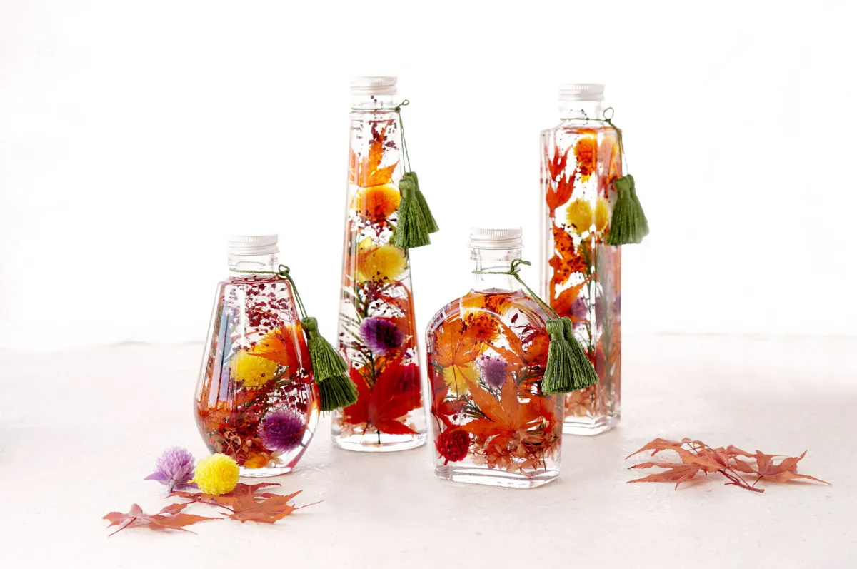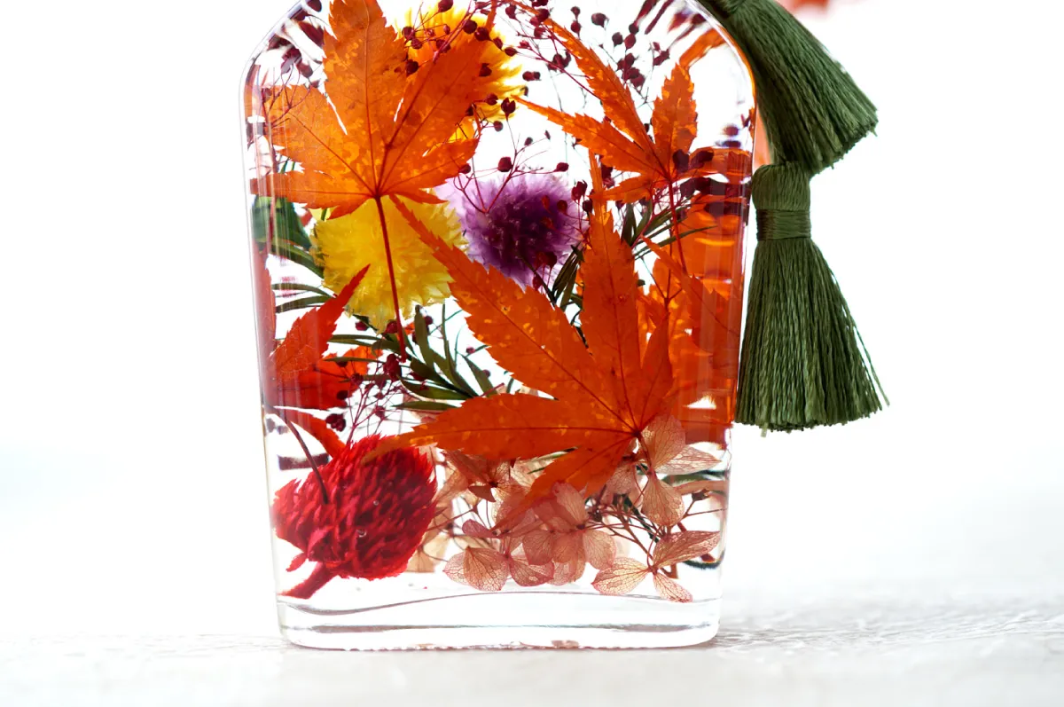 秋の瞬間をぎゅっと閉じ込めたような秋色のハーバリウム。