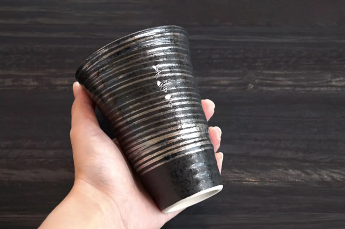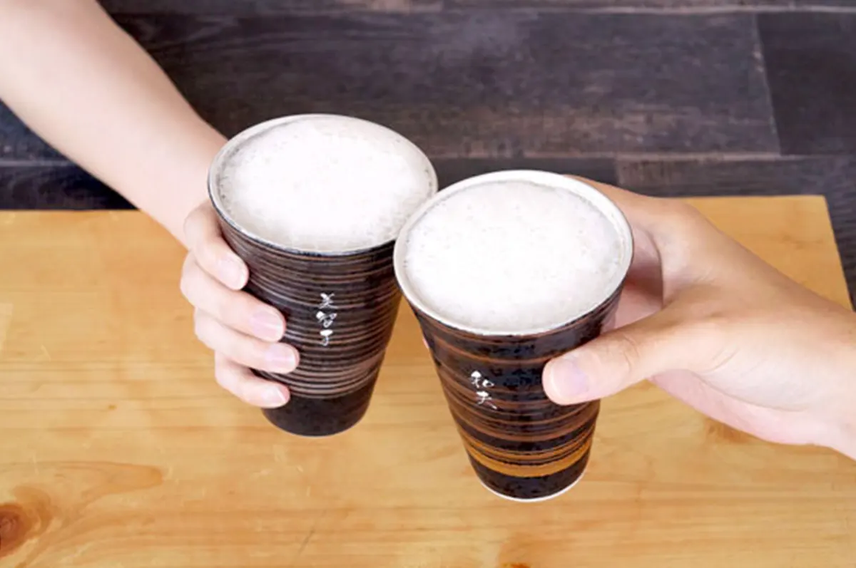 金・銀のビアカップをひとつにしたペアセットです。表面に施された刷毛巻がモダンな和の雰囲気を演出します。容量はたっぷり飲める約400ml。内側の凹凸が繊細なビール泡を生み出す秘訣です。