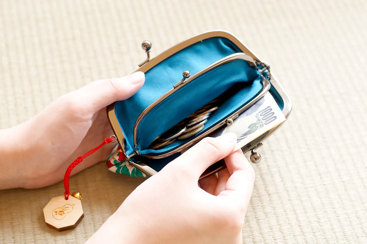がま口財布はガマガエルの口の形から名付けられたとされており「お金がカエル」「福がカエル」などの意味があります。「たくさんの幸運が訪れますように」という願いを込めて。