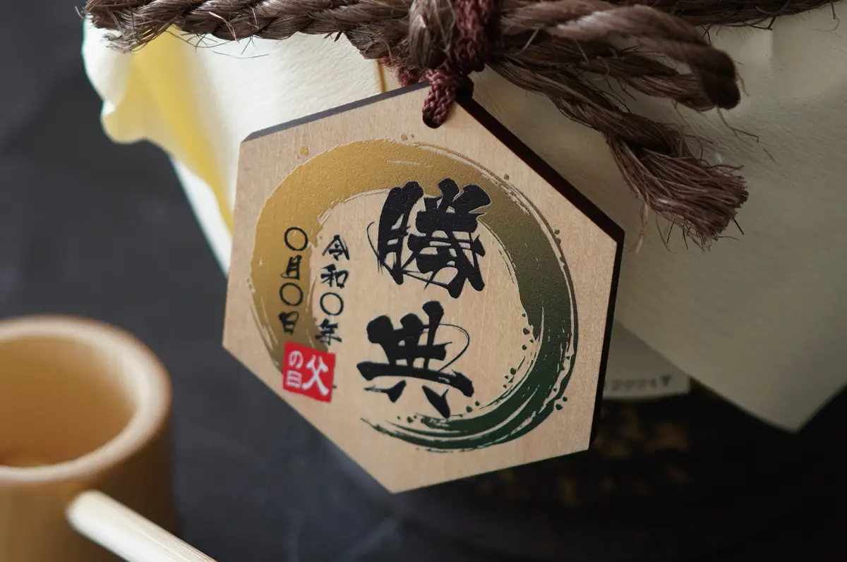 100年以上受け継がれてきた和甕(わがめ)で、じっくりと熟成させた本格芋焼酎です。六角形の木札に、大きな甕(かめ)に負けないインパクト抜群の名入れが目を引きます。糖質・プリン体ゼロだから、健康が気になるお父さんにもおすすめです。