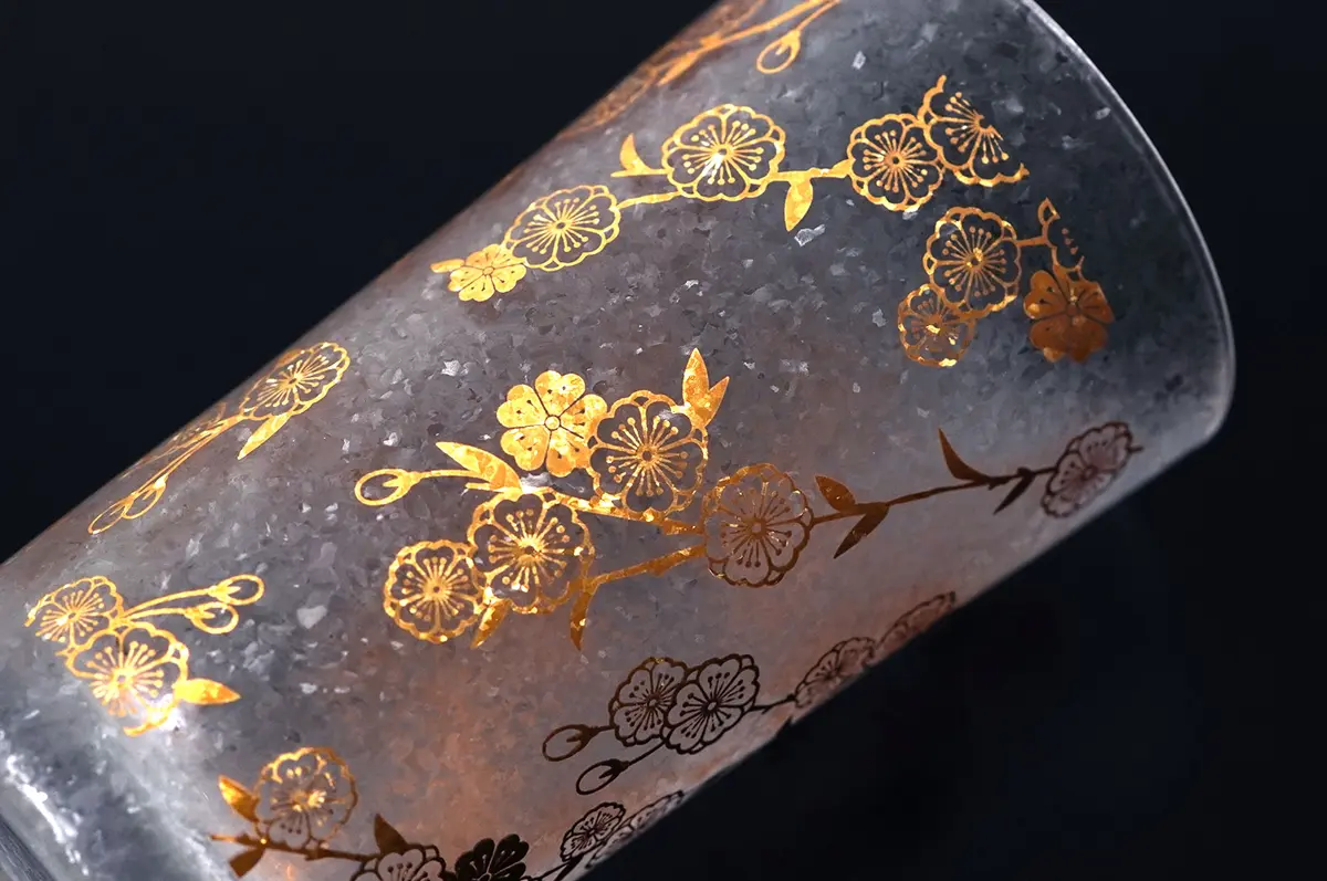名入れ 和小紋グラスと枡のこぼれ酒セット