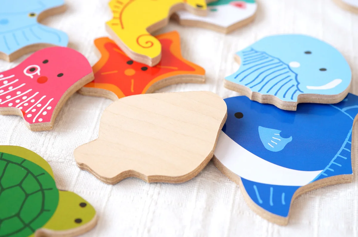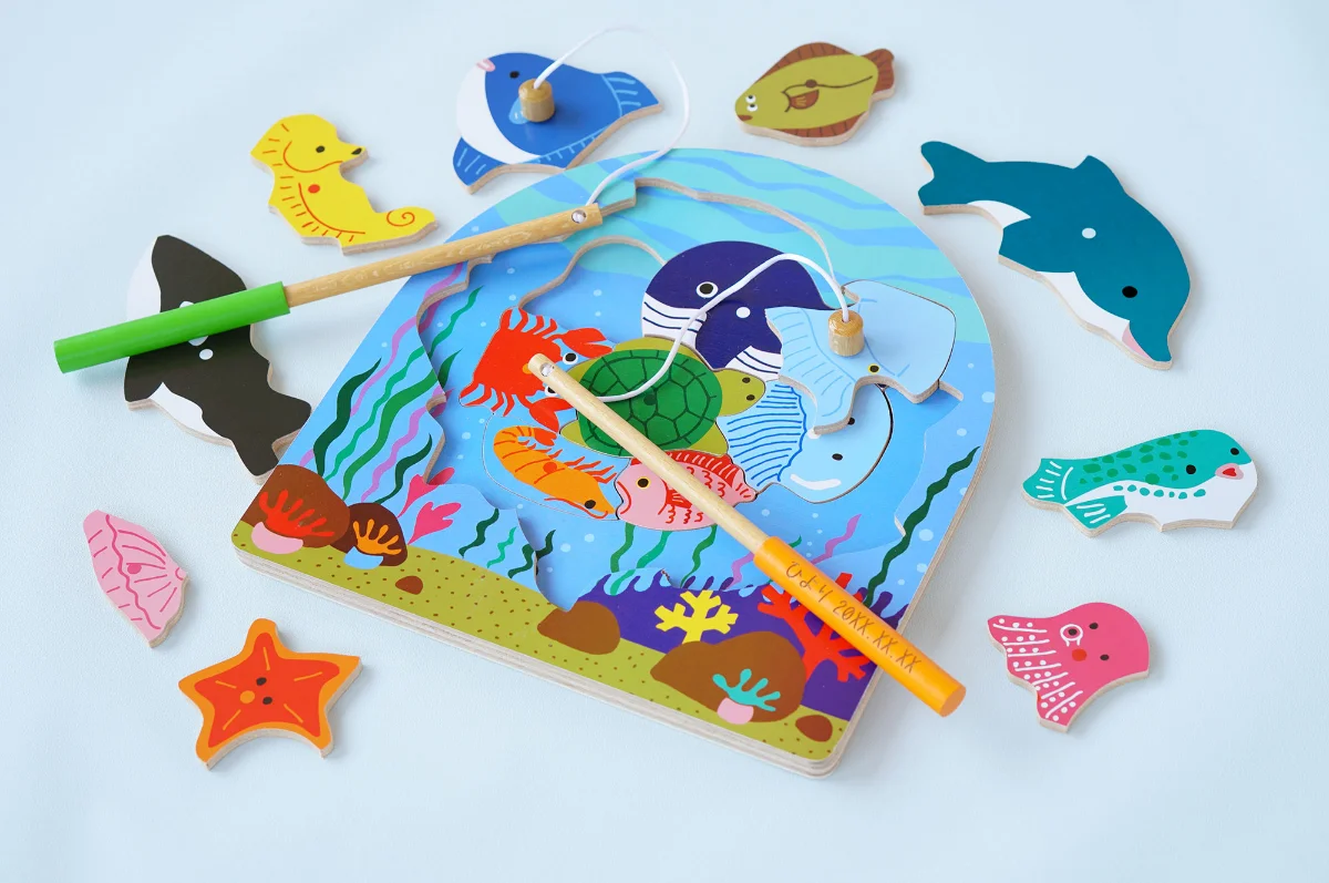 手先を動かす力と集中力を高めながら、楽しく海の動物も学べます。釣り竿は2本あるので、家族で勝負をして楽しむなんて遊び方もできます。
