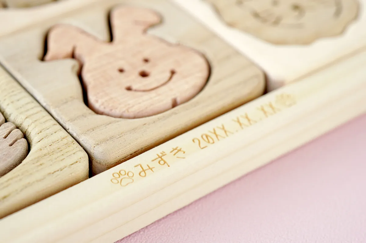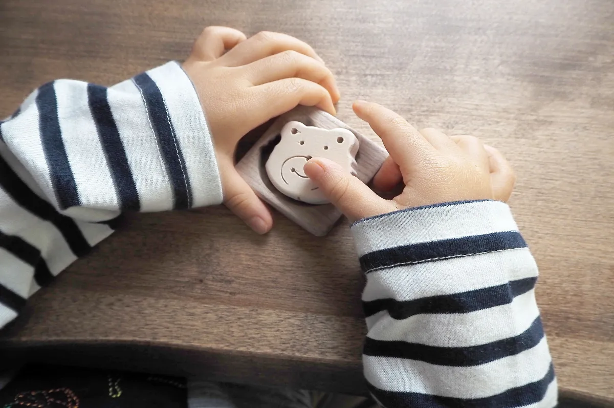 丁寧に面取りされたパズルは、ずっと触っていたいくらい気持ちのいい手触りです。天然木で作られ、安心安全な日本製だからママも安心して使えるでしょう。