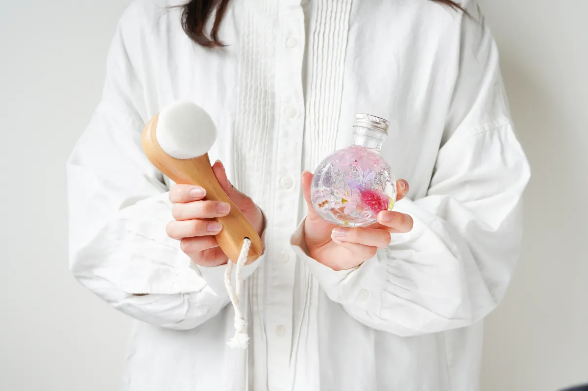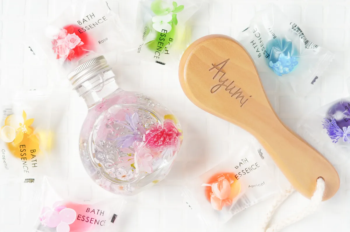 プレゼントにぴったりなハーバリウム、バスエッセンス、名入れ洗顔ブラシの3点セット。たった1つのギフトで、お風呂タイムを格別な時間へとランクアップさせます。