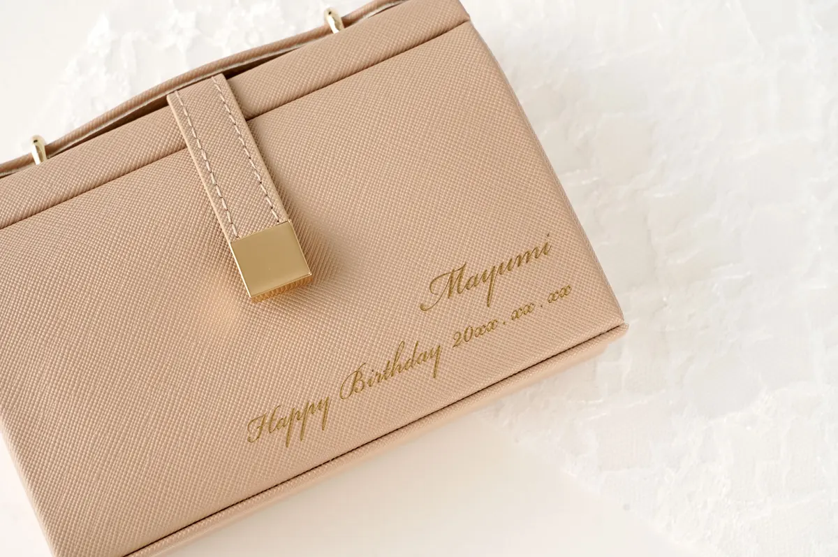 カバンの中に入れてそのまま持ち歩けるコンパクトサイズなので、旅行や携帯用にぴったり。ブランドロゴのような控えめなデザインの名入れが、特別感を高めてくれます。
