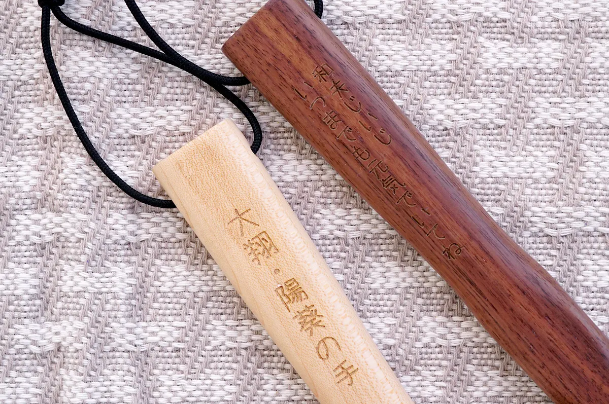 お名前だけでなく、短いメッセージも入れられるタイプです。カラーはブラウン・ナチュラルの2色から選べます。握りやすいグリップと肉厚で丈夫な先端で、使い勝手も抜群。吊り下げ用の紐付きなのも嬉しいポイントです。