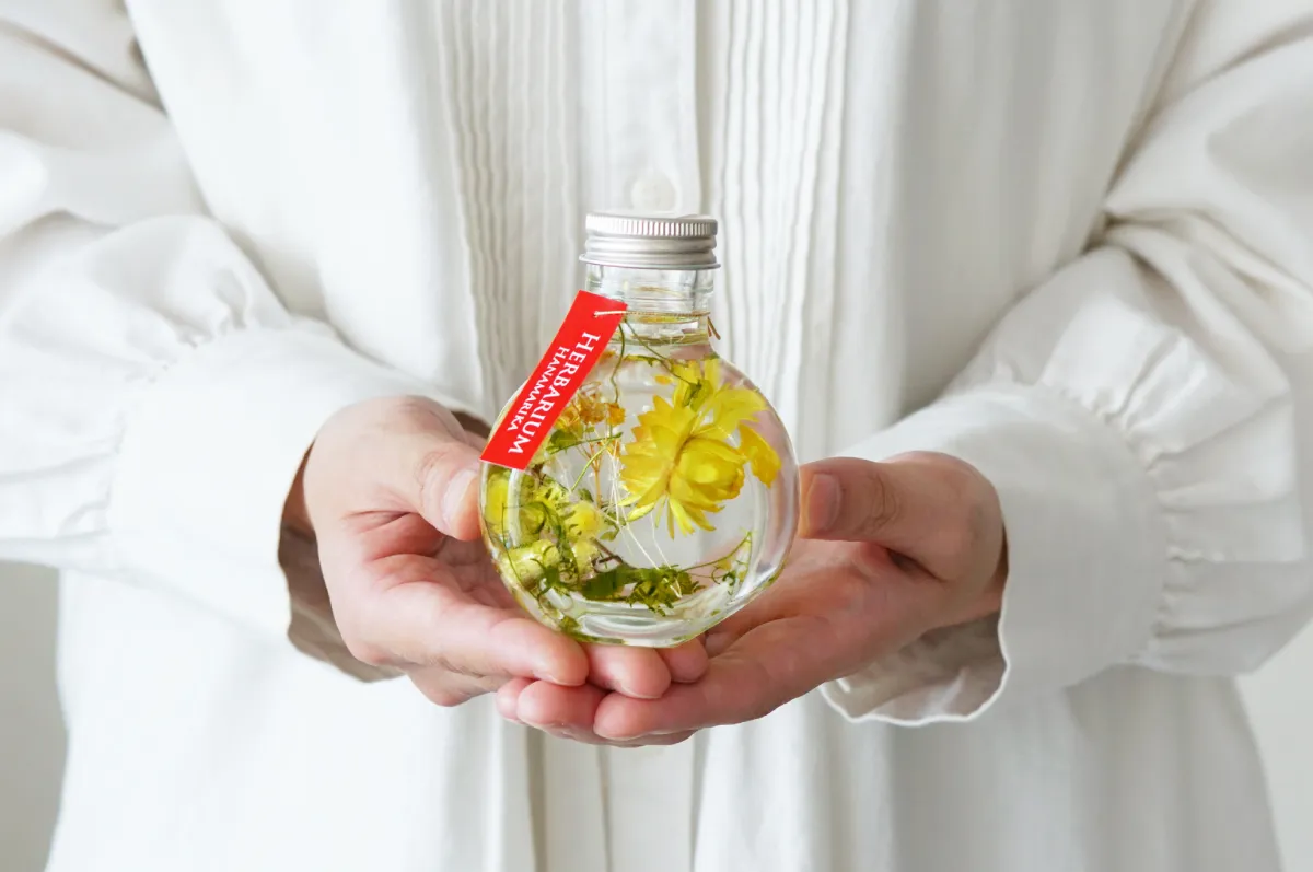 飾りやすいミニサイズのハーバリウムとバウムクーヘンのセットです。
