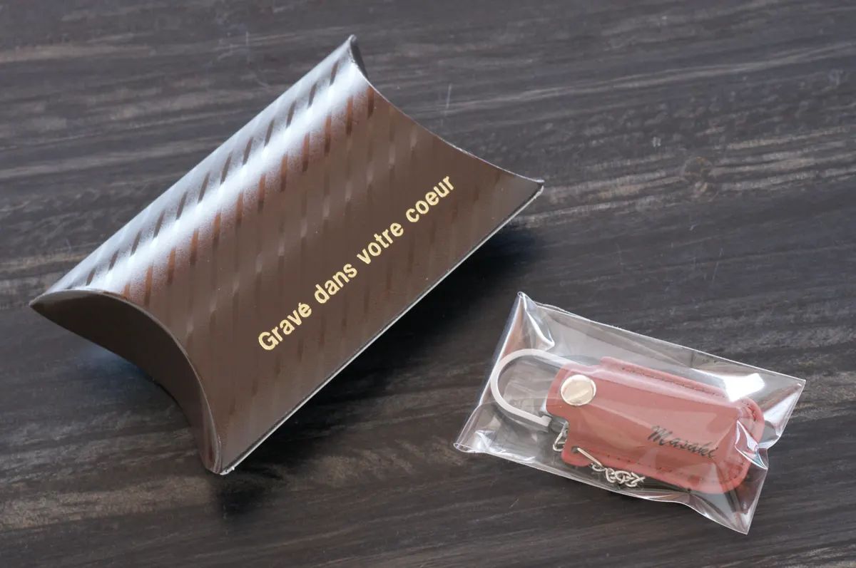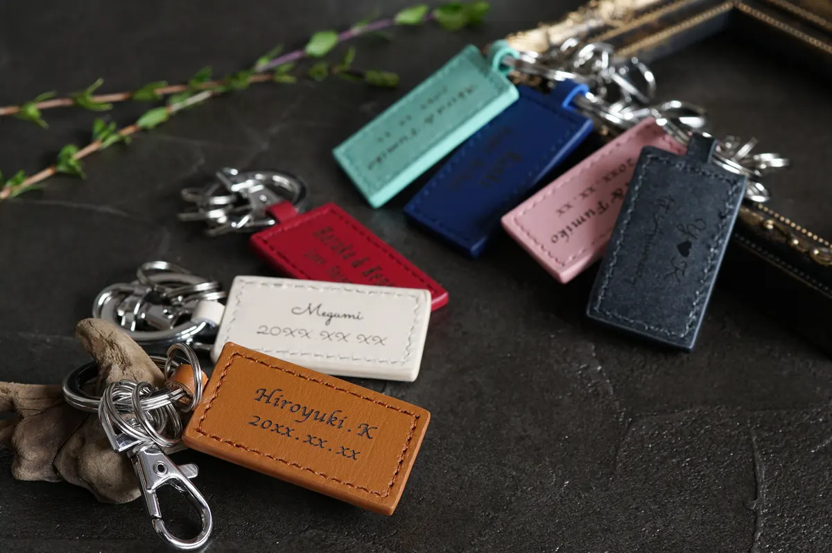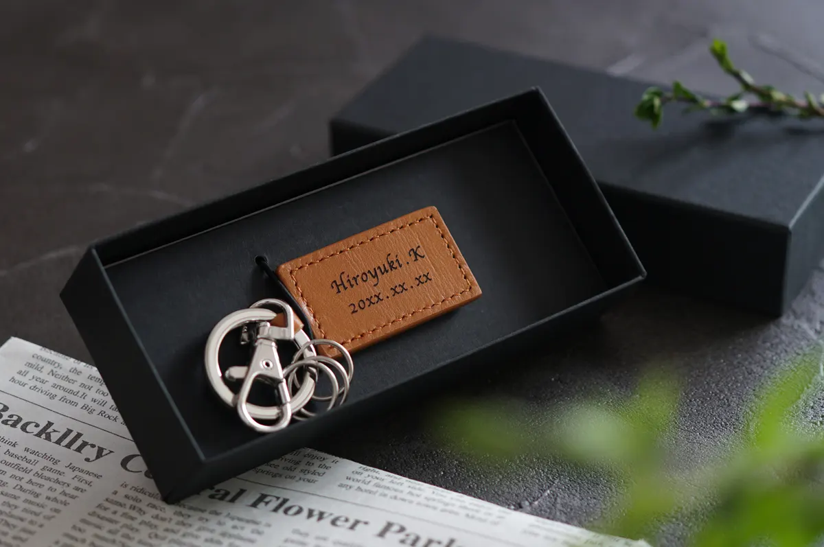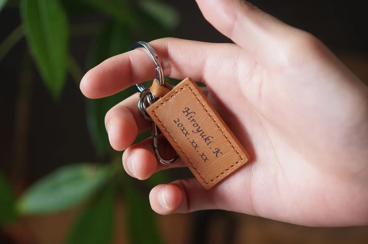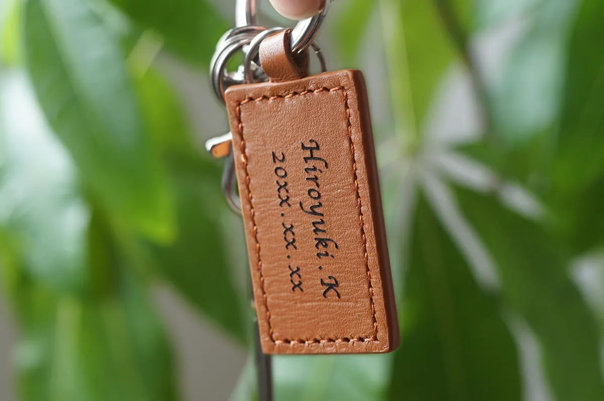 名入れ スクエアレザーキーホルダー