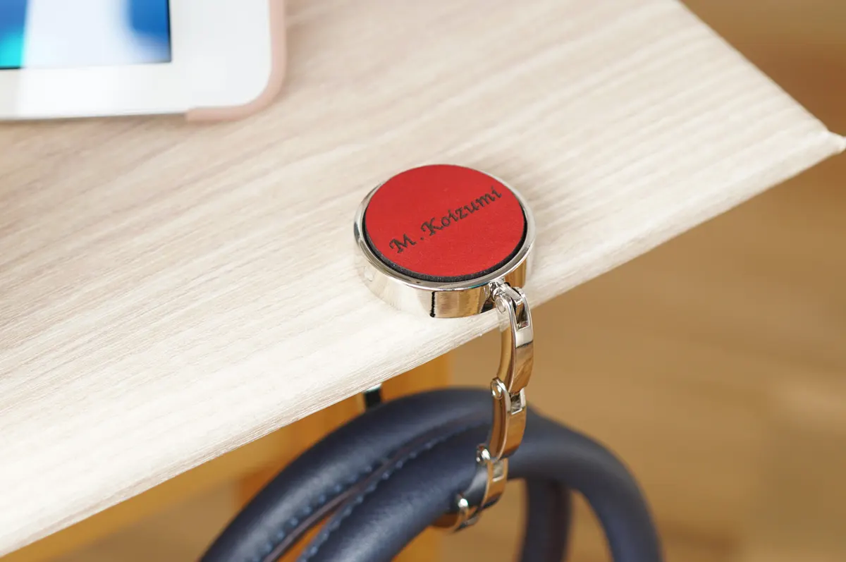 バッグハンガーはカフェやレストランなど、出先でお気に入りのバッグをスマートに掛けられる便利グッズ。