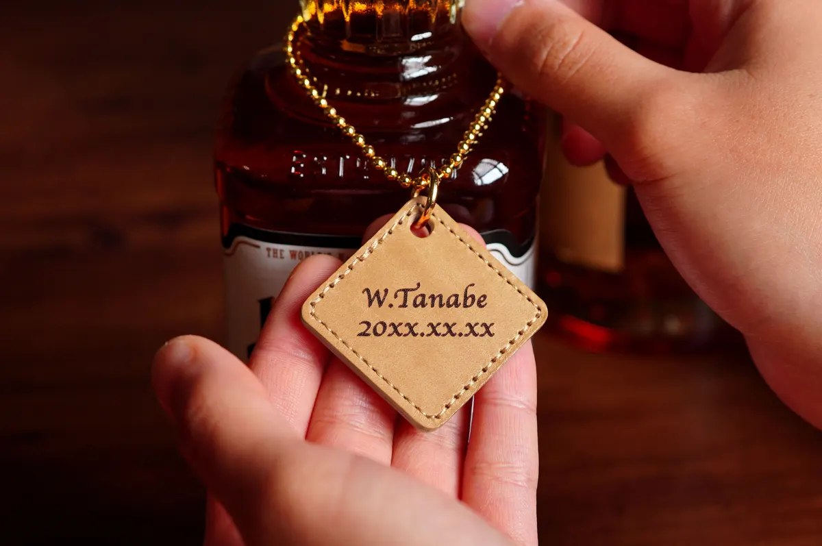 行きつけのお店があるお酒好きの男性に。高品質なイタリアンレザーを使用したボトルタグです。