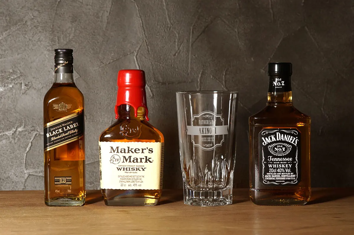 厳選した人気の3種類のウイスキーと名入れグラスの飲み比べセット。こだわりのグラスでウイスキーを飲めば、格別なひとときへと変わります。