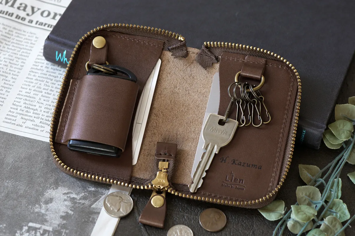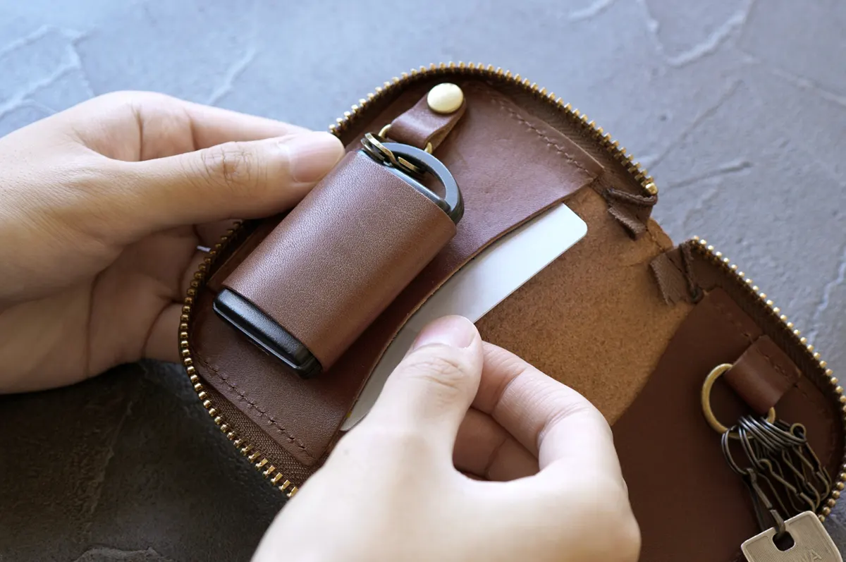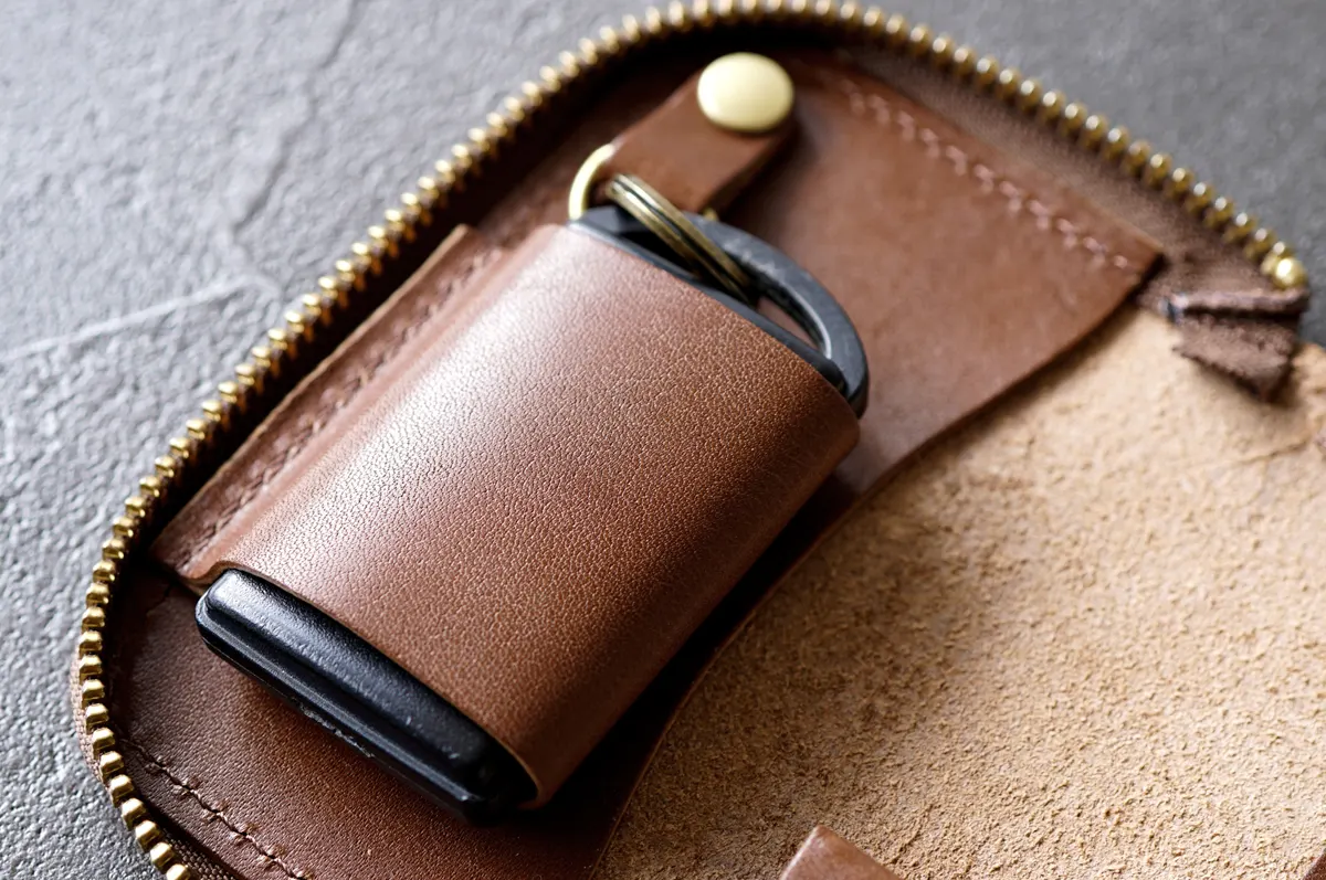 ポケットにすんなり入るサイズで、鍵やカードなどの貴重品をまとめて収納できます。レザーの上品な見た目は、私服にも仕事着にもなじむでしょう。
