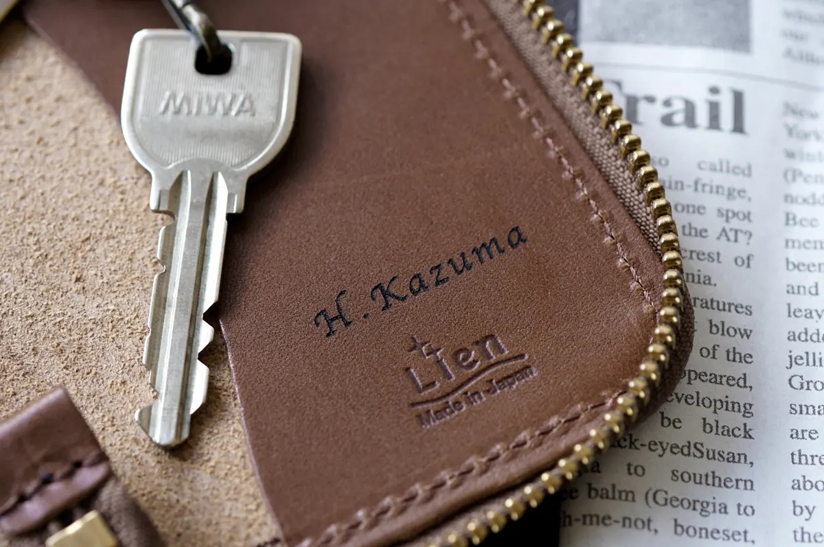 手のひらサイズの名入れコインケース。小銭もカードも折りたたんだお札も入るので、使い勝手は抜群です。