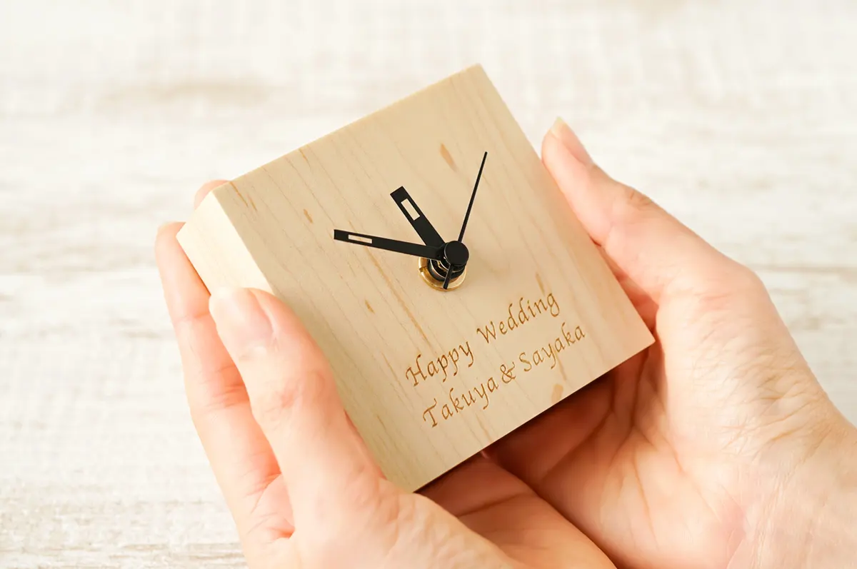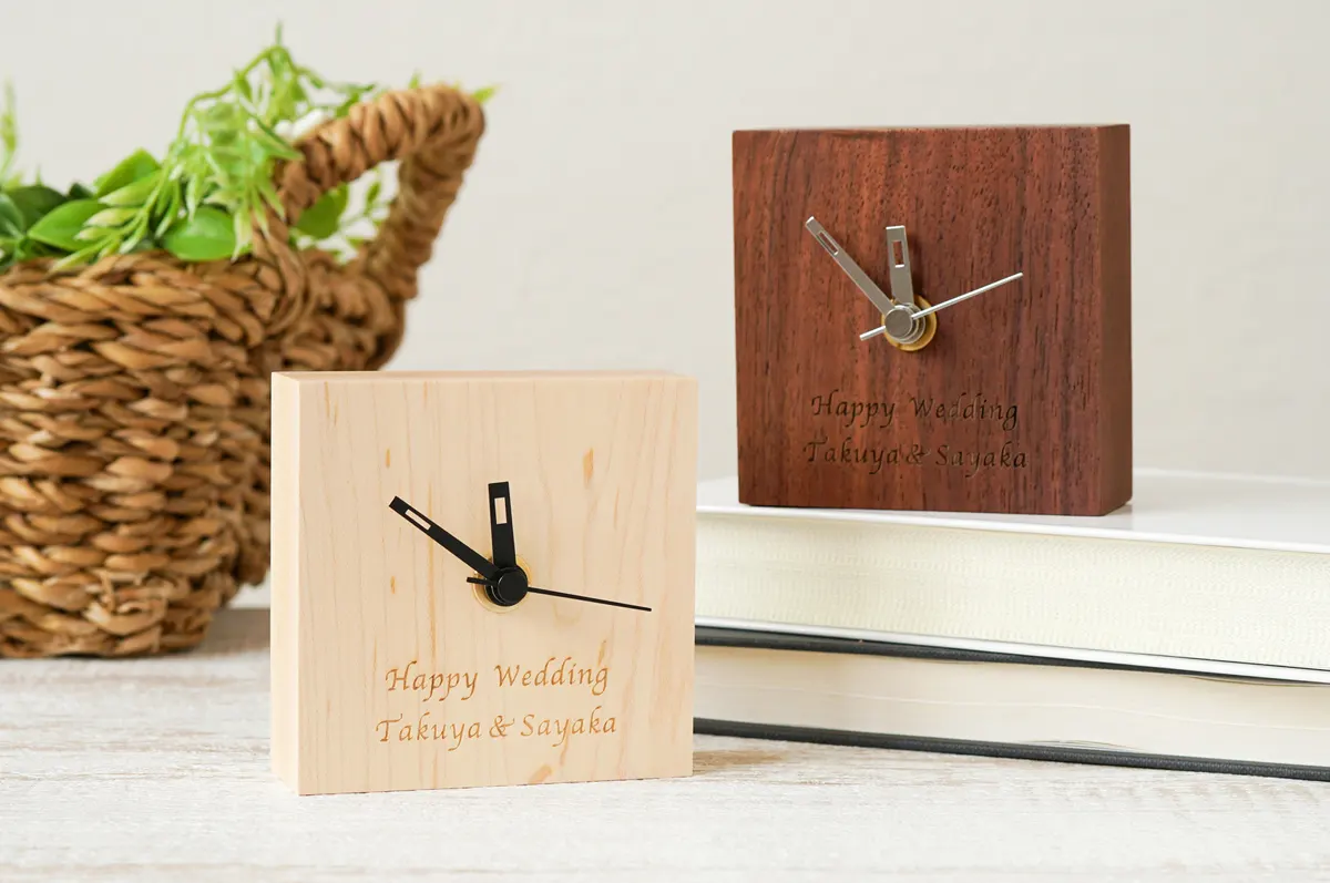 木のぬくもり感じるプチクロック。どんなお部屋にもなじむナチュラルな風合いと、置き場所を選ばない手のひらサイズがポイントです。天然木ならではの、ひとつひとつ個性ある木目や色合いを楽しんで。