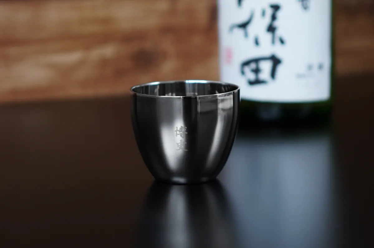 世界的に「ものづくりの町」として知られる、新潟県燕産のステンレス製ぐい呑み。超一流の技術を持った職人たちが、ひとつひとつこだわって仕上げた逸品です。最高級のステンレスを内側まで磨き込んでおり、日本酒を注ぐと内面が輝きます。断熱性に優れた二重構造が、飲み頃温度を長く保ってくれるのも嬉しいポイントです。