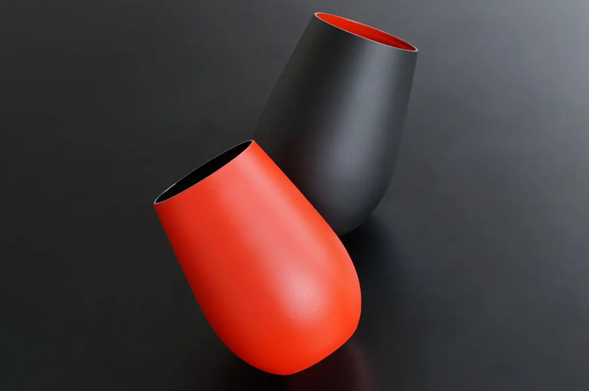赤と黒のバイカラーとスタイリッシュなフォルムが目を引くメタルカラーグラス。ドイツの老舗シュトルツル・ラウンジシッツ社製の強靭なグラスを使用しています。