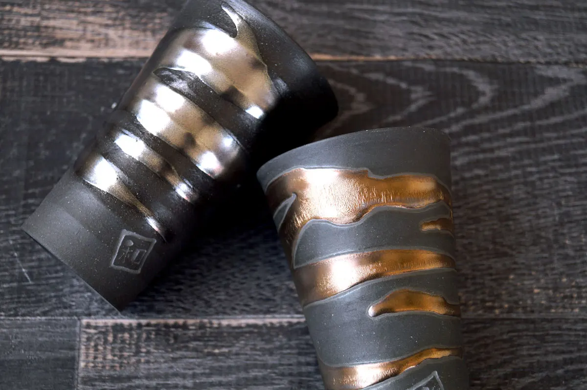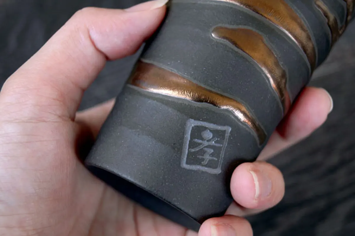 三重県四日市市の伝統工芸品『萬古焼(ばんこやき)』の陶器製タンブラー。飲み口に施された上品な金彩加工がアクセントとして高級感を演出します。