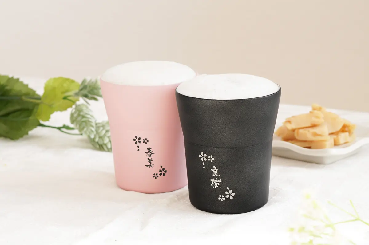 眺めていると、ふたり笑顔で長生きしたくなる。そんな思いになるペアタンブラー。銀婚式、金婚式、米寿や白寿といった大切な節目のお祝いにぴったりです。