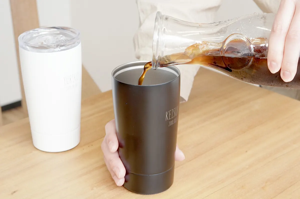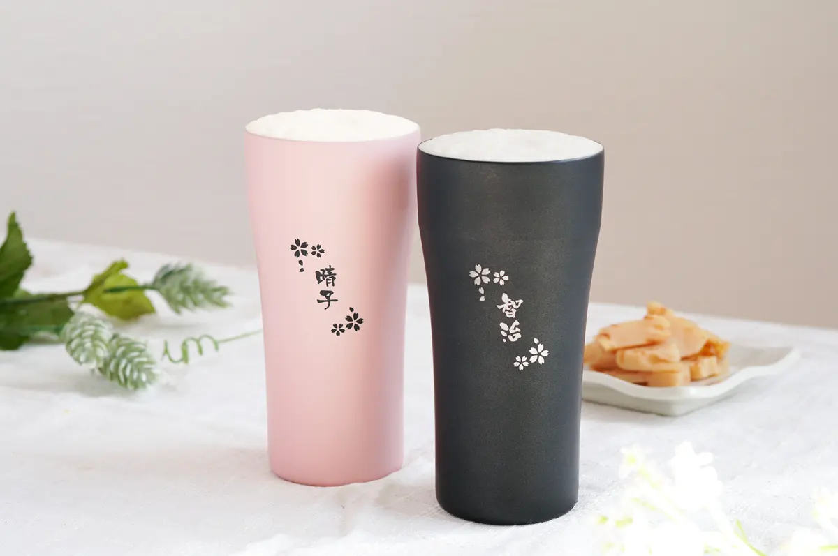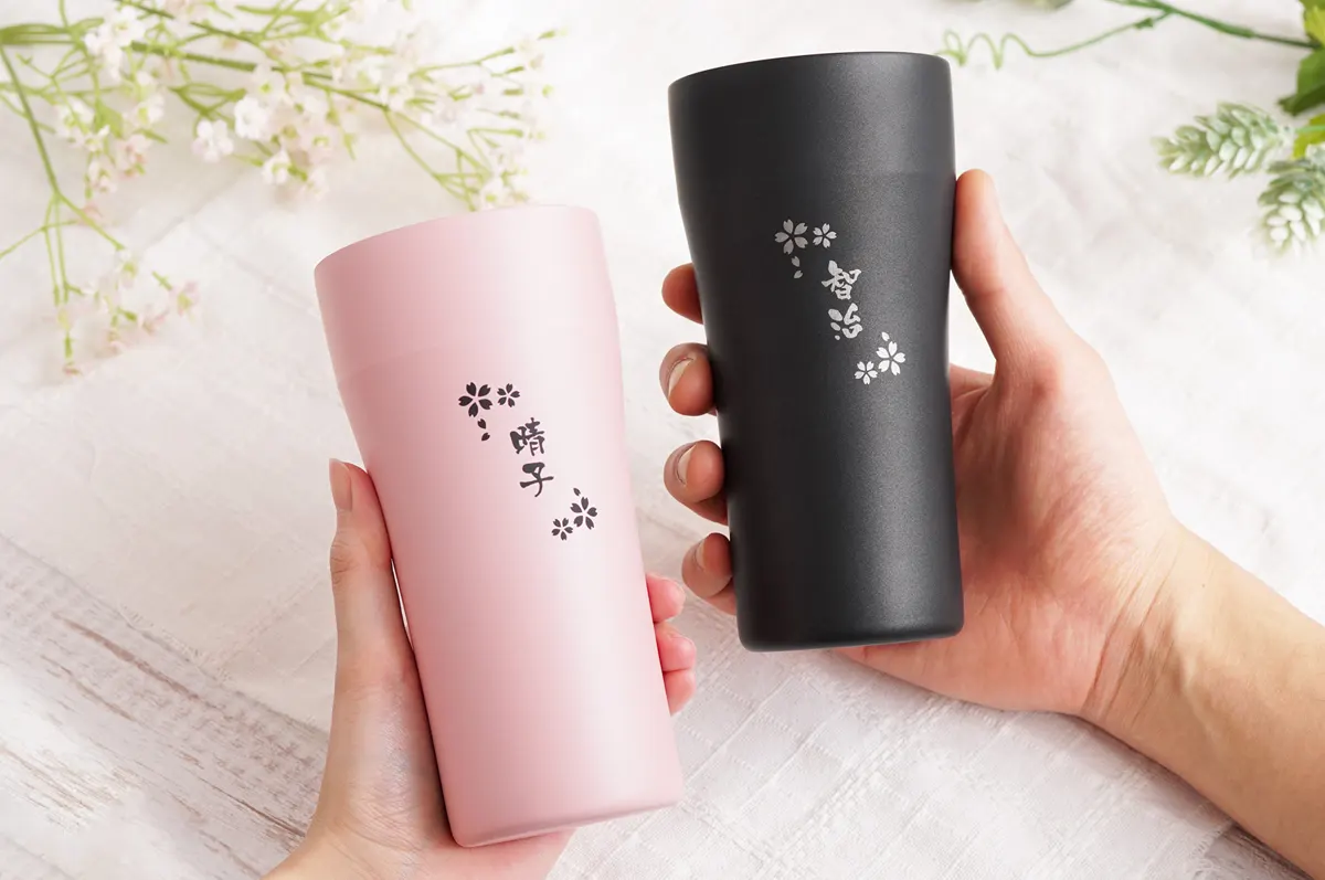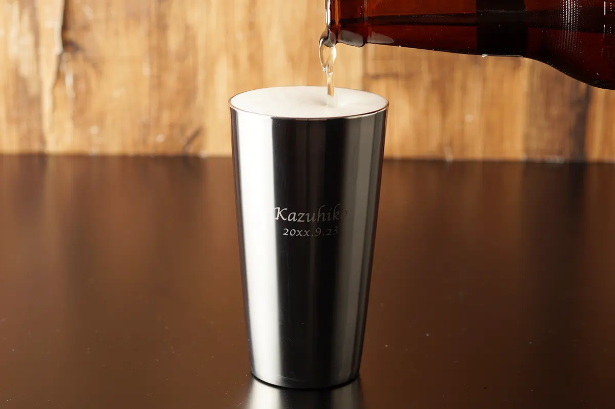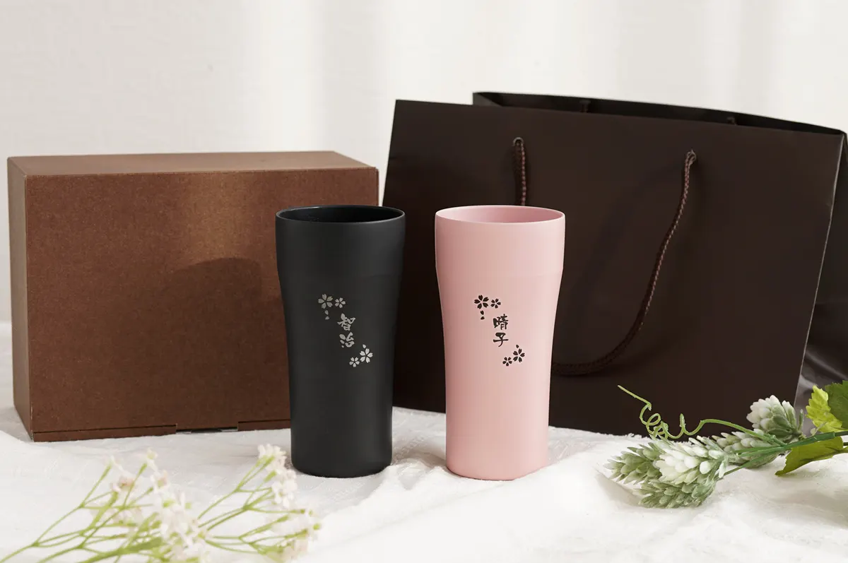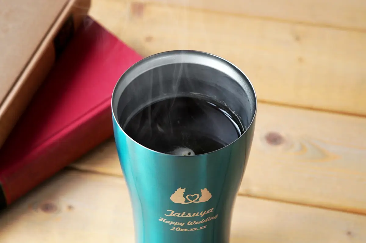 その中でも結婚祝いにおすすめなのは、オリジナルの彫刻が入れられる「名入れ」タンブラー。オーダーメイドだからこそ演出できる特別感が大きな魅力です。タンブラー自体は決して珍しいものではありませんが「時間をかけて、あなたたちのために選んだプレゼントです」というメッセージが自然に伝わります。