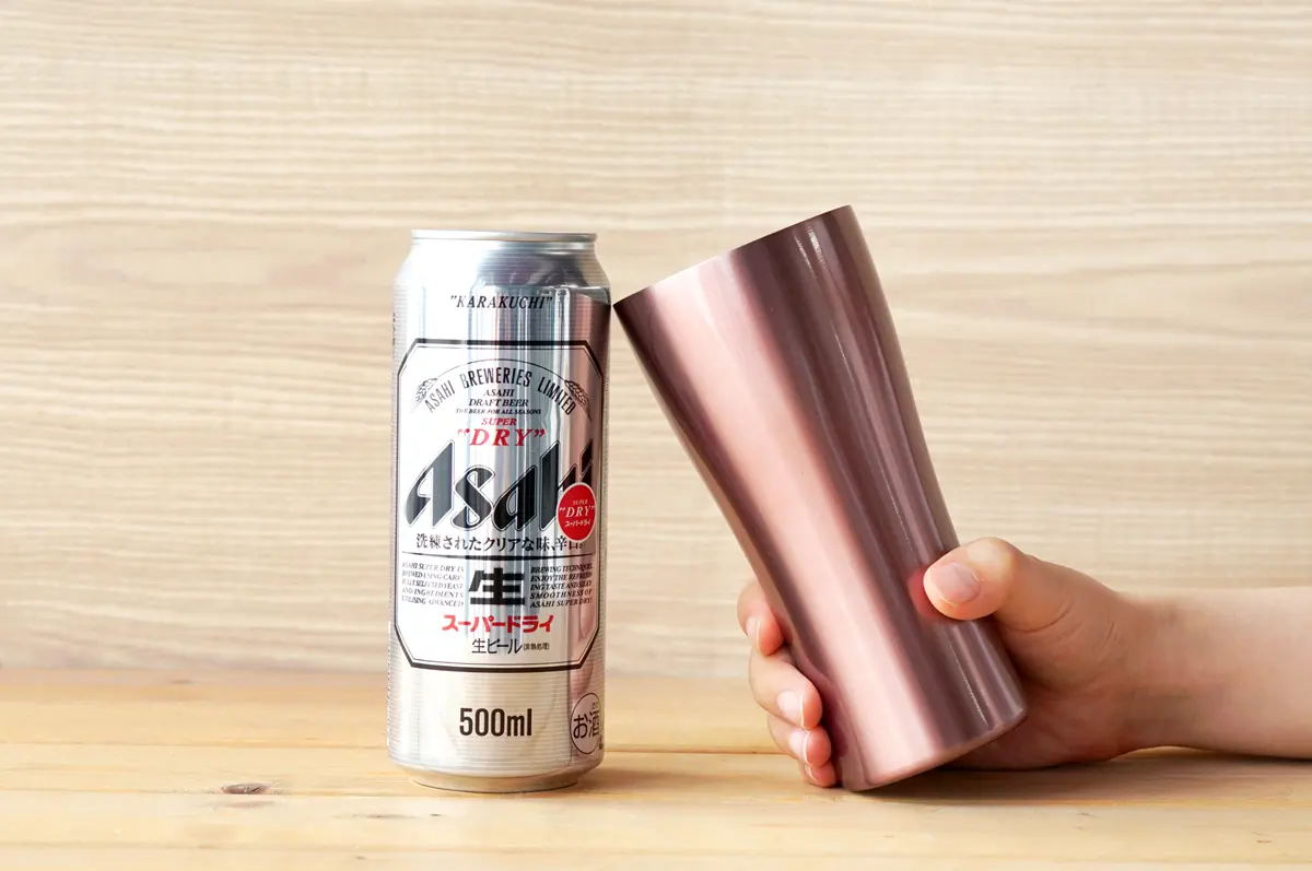モノづくりの町として知られる新潟県燕市の職人たちが、ひとつひとつ手仕事で仕上げた逸品。世界に通用する超一流の技術が惜しみなく使われた、まるで美術品のような美しさです。絶妙な加減で磨き上げられた内側のヘアラインが、ビールの泡立ちをよりクリーミーにしてくれます。