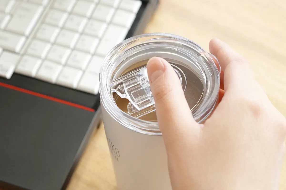 セラミックコーティングによるしたマットな質感が特徴で、ステンレス製のメタリックなイメージを一新。金属の飲み口が苦手な人でも使いやすい滑らかな口当たりです。