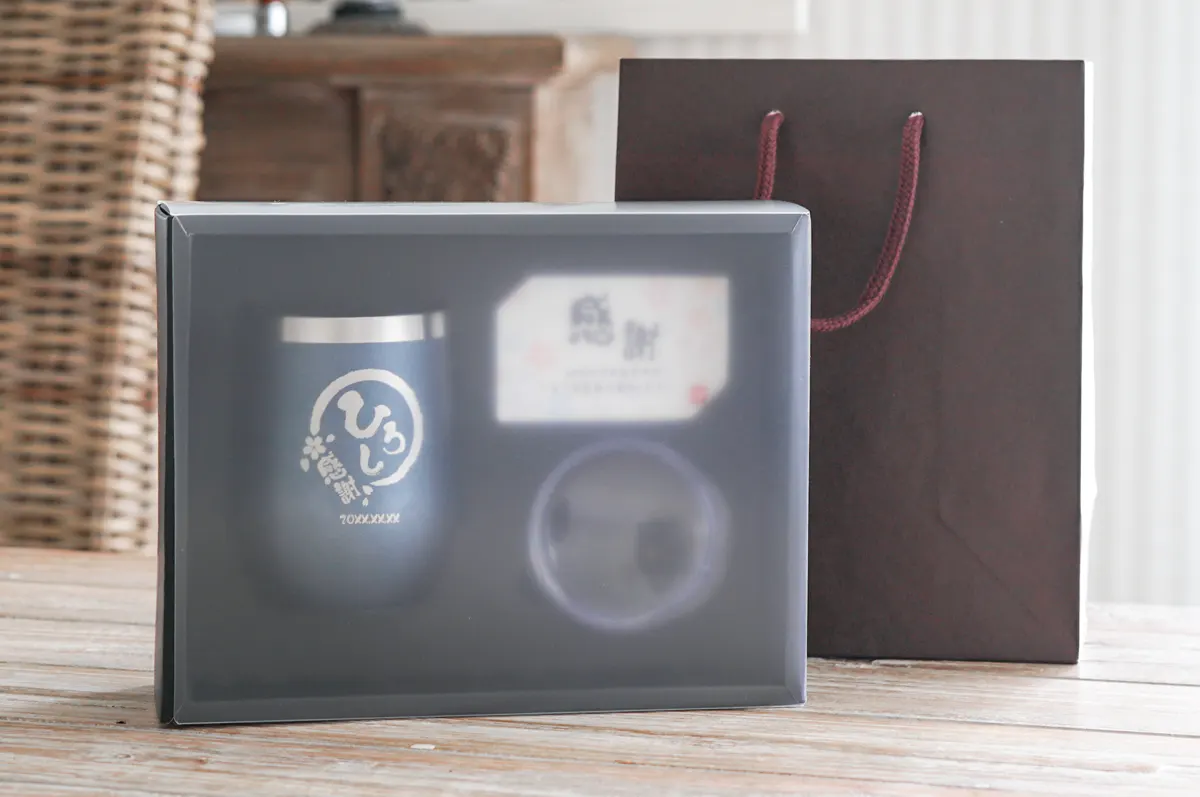 当店で大人気の名入れタンブラーギフトセット。1つのギフトボックスに、以下の8つの特典を詰め込んだ人気商品です。