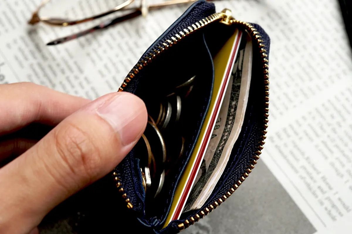 手のひらサイズの名入れコインケース。小銭もカードも折りたたんだお札も入るので、使い勝手は抜群です。