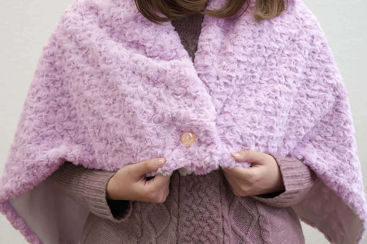 ふわふわな手触りとくすみカラーがかわいいブランケット。ボタンを留めればポンチョやボレロとしても使える3WAY仕様です。お名前の刺繍を入れて特別な贈り物に。目立ちすぎない刺繍色なので、オフィスや外出先でも気軽に使えます。