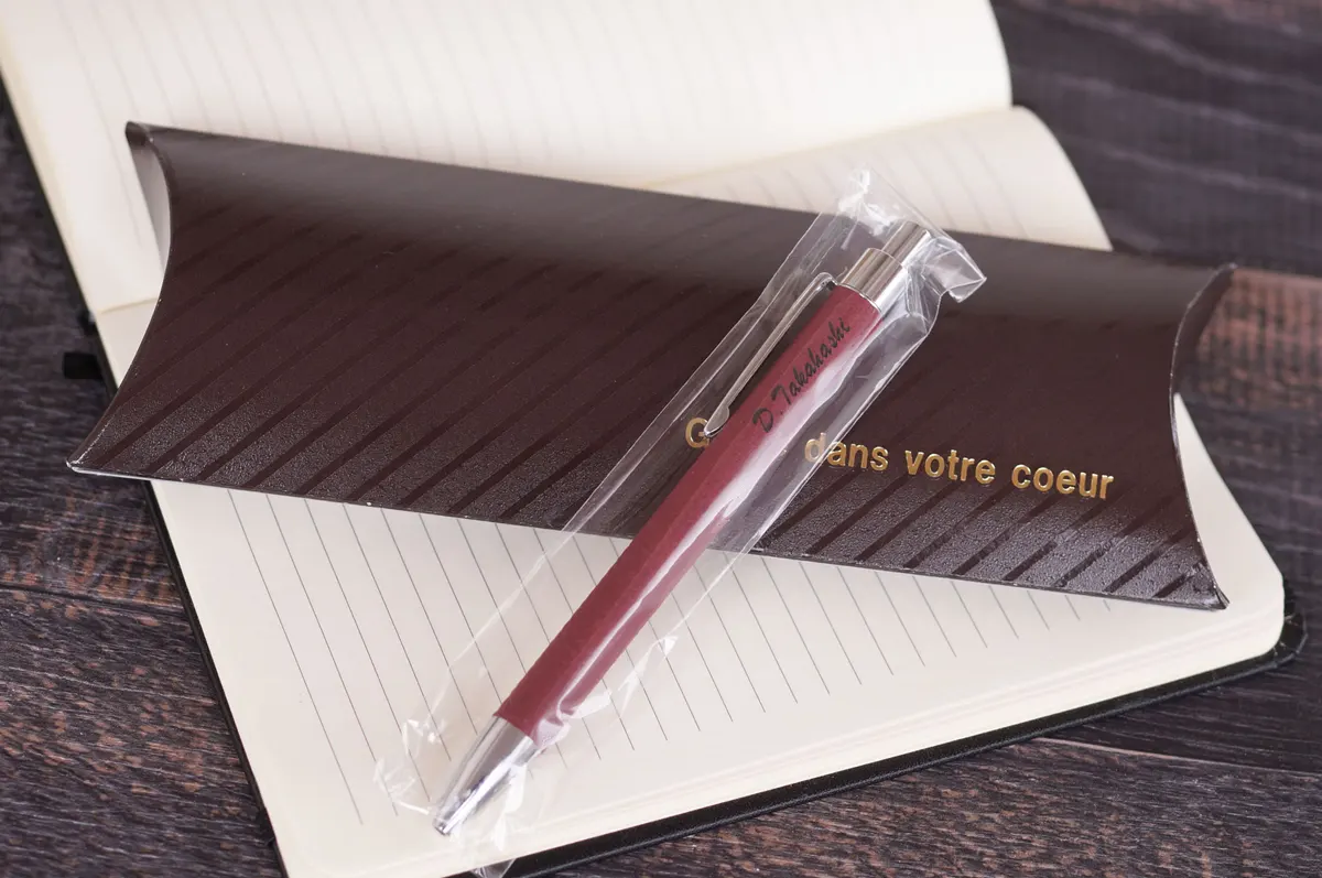 ちょっと変わった素材に、特別な名入れを刻んだボールペンは、周りと一線を画すプレゼントに。お値段も手頃なので「重くならない贈り物」としても優秀ですね。