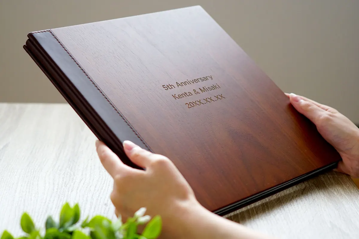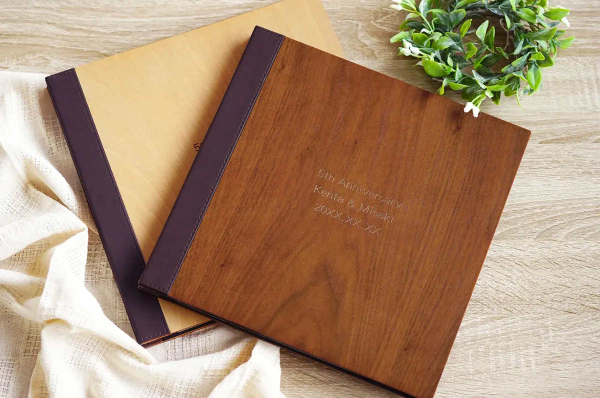 木のぬくもりを感じる木製のフォトアルバム。飾り映えするデザインで、しっかりとした作りだからこれから先ずっと使えます。
